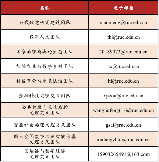 2022年拟招收学科交叉专项博士后的各团队名称、投递邮箱信息如下,每个团队博士后名额为1名。
